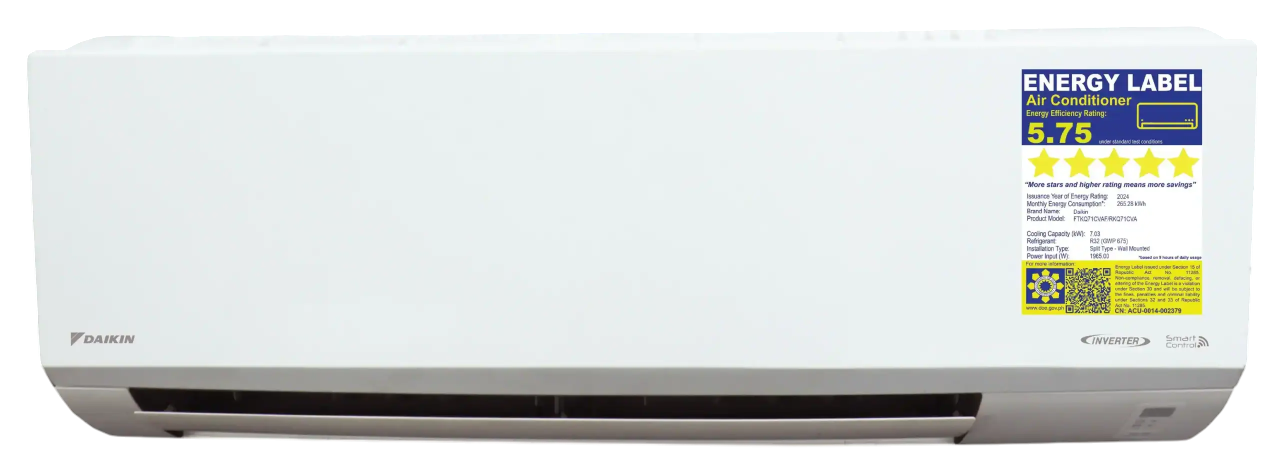 The FTKC Series is a high efficiency Inverter-type air conditioner that cleanses the air you breathe with its Gin-Ion filter that effectively traps and decomposes 99.9% of viruses and bacteria