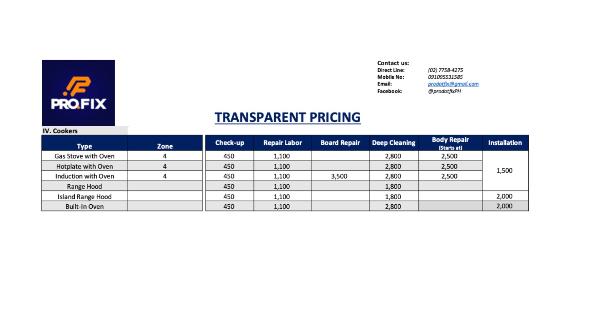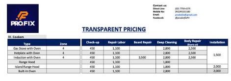 COOKERS UNIT SERVICE PRICING